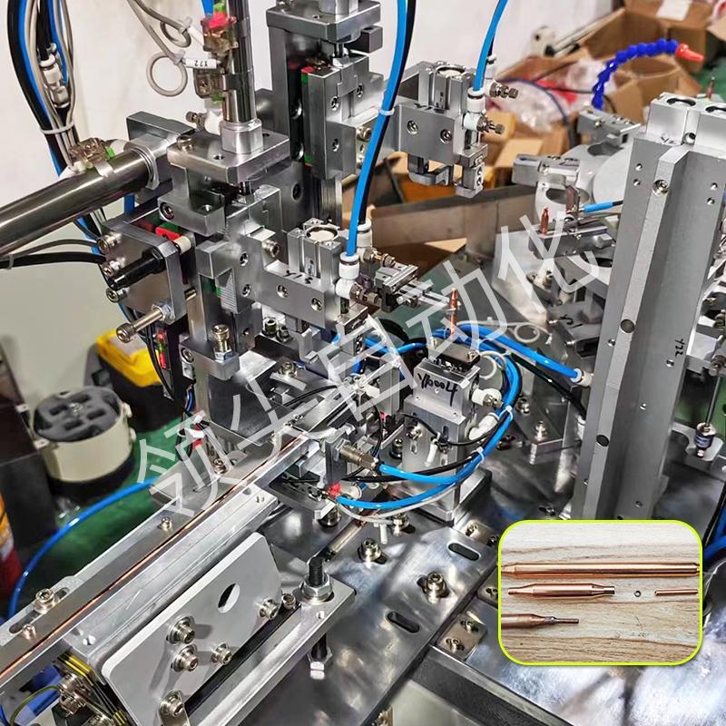 专为液胀温控器行业定制;铜管进料分头,灌充管,焊环自动组装,超高频焊接,下料;提升效率,打通传统火焊工艺;气改电,安全生产,解决温控器瓶颈工序。