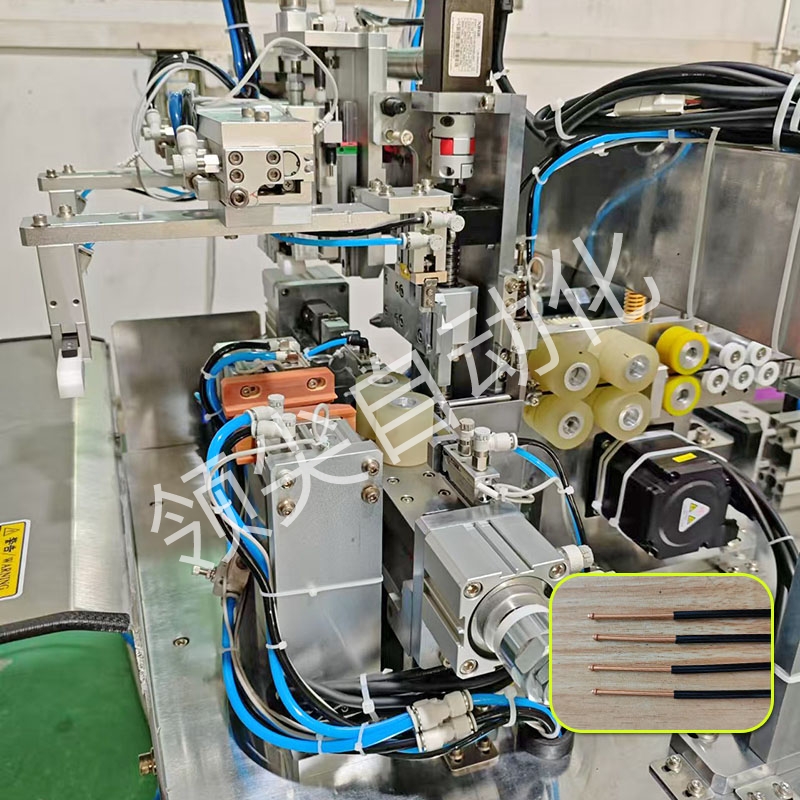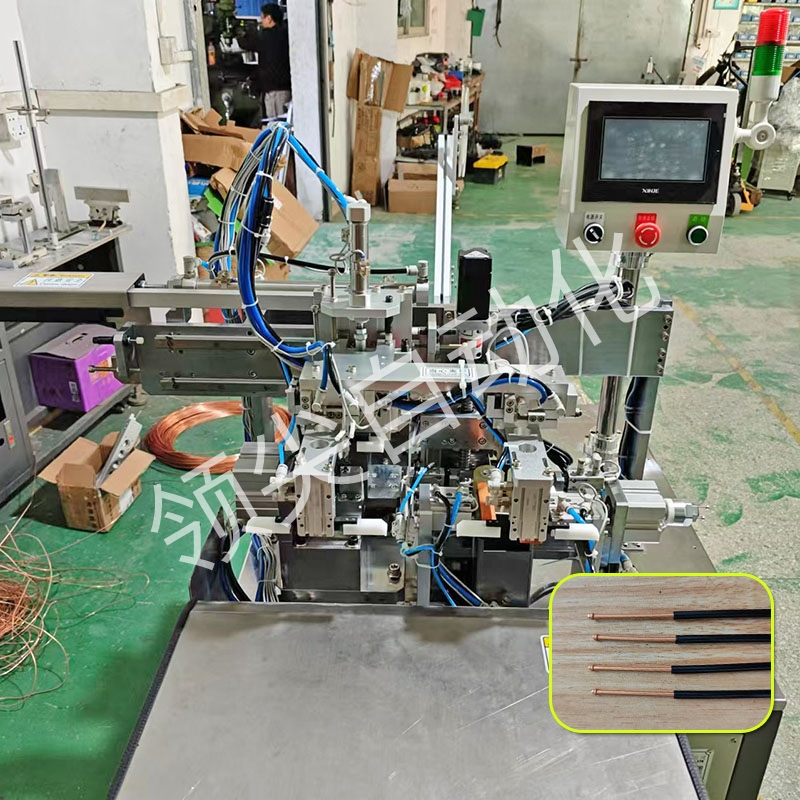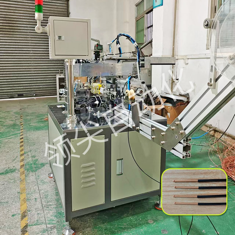 专为液胀温控器行业定制;直径1.5MM/1.9MM铜管自动开料,切断,墩口,下料全自动完成;过塑管增加两端剥皮功能;提升效率,安全生产;温控设备找领尖自动化。