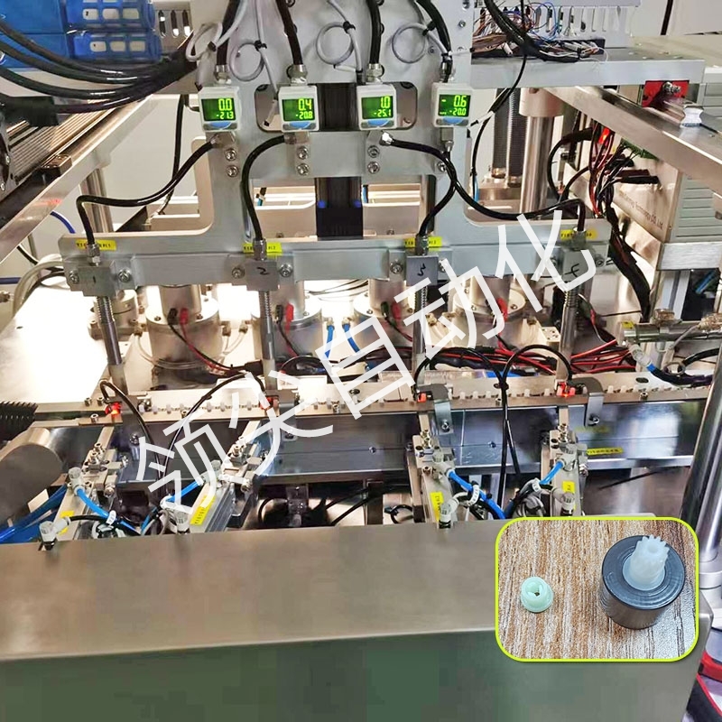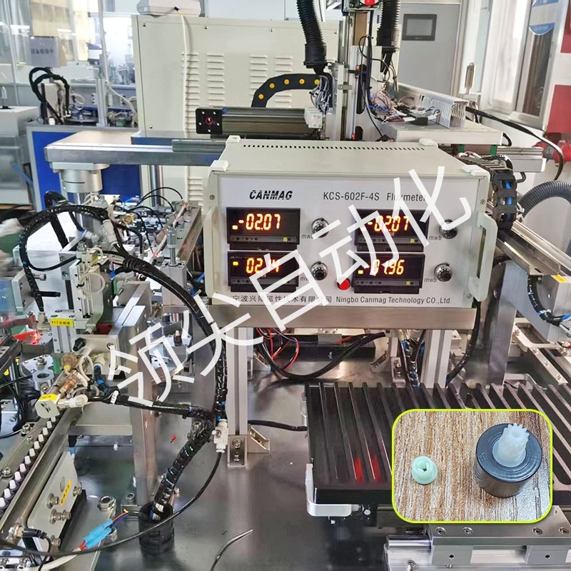 此设备专为冰箱风门开关定制;磁环,胶粒自动送料铆压在一起,充磁,磁通量检测,除尘,装盘;效率高,稳定性好;可根据以上工艺定制其他产品自动充磁组装设备。